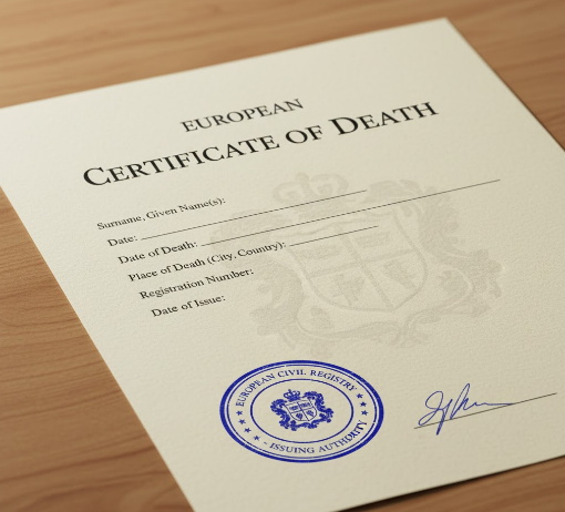 Свідоцтво про смерть — це перший і найважливіший документ, який потрібен для репатріації тіла в Україну. Без нього неможливо почати жодну процедуру: ні перевезення тіла померлого з-за кордону, ні оформлення спадщини, ні отримання страхових виплат.
